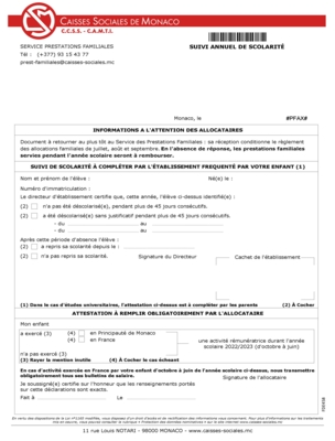 Pensez à nous retourner au plus tôt le formulaire de suivi annuel de scolarité pour le paiement des allocations familiales des mois de juillet à septembre 2024 et pour la validation de l’année scolaire 2023/2024